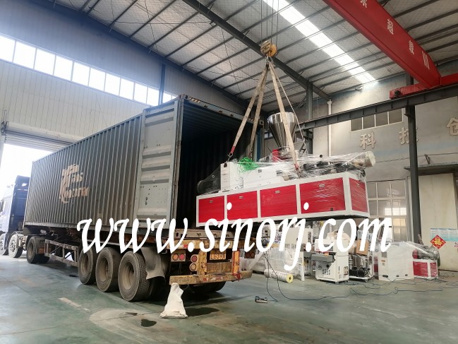 PVC木飾面生產線 型材生產線裝柜發貨中