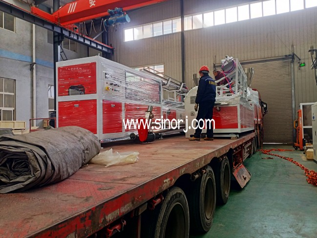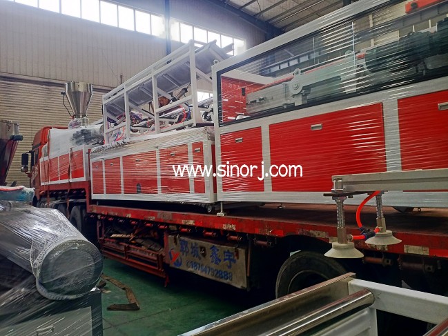 UV仿大理石板生產線工廠內試機與省內格柵板生產線發貨中同時進行